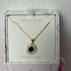 Discover elegance with the necklace, featuring a gold plated chain and a captivating black and gold pendant. Perfect for any occasion.