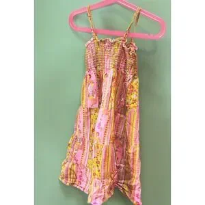 Keywords: girls dress, summer dress, pink dress, paisley dress, floral dress, smocked dress, tiered dress, size S, size 4, size 5, kids dress, childrens dress, bohemian dress, casual dress