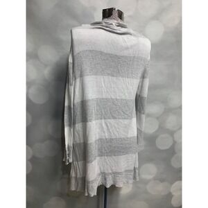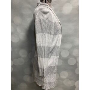 RED grey white striped long lightweight open large cardigan button sleeve detail
