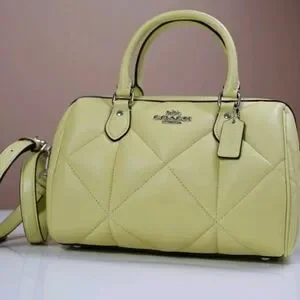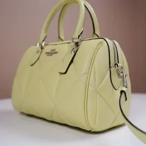 Coach Rowan Satchel In Puffy Leather Silver/Pale Lime