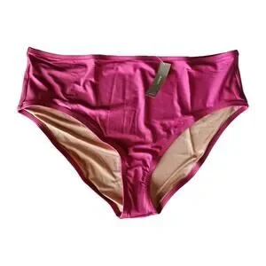 J. CREW Women's Plus Size 2X Bikini Bottom - Radiant Fuchsia, High Waist, High Leg, Medium Coverage, 82% Polyamide, 18% Elastane