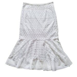 Gianni Bini White 100% Cotton Feminine Fishtail Eyelet Ruffle Hem Skirt M