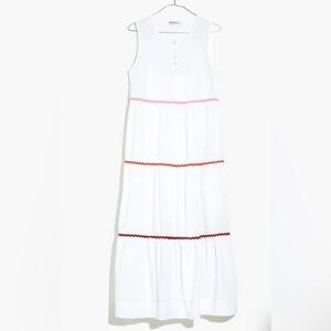 Madewell Rickrack Cattail Tiered Cotton Dress White Sleeveless Size M Lined