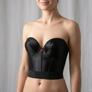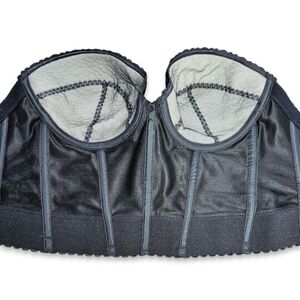 Carnival Size 38C Corset Bra Vintage Black Longline Strapless Low Back Satin
