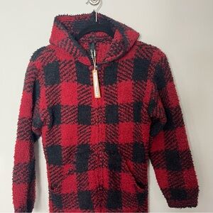 NEW Skims Cozy Unisex Onesie Fleece Hooded Black area Buffalo Check Plaid *T