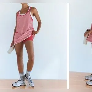NWOT Free People FP Movement Hot Shot Printed Mini Dress - Court Stripe Grapefruit - medium