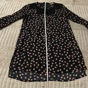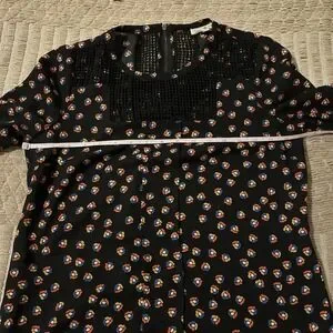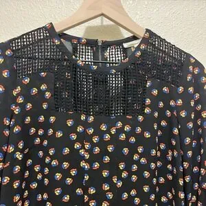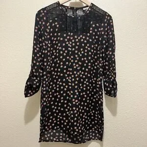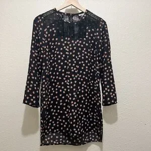 The Meadow Rue Anthropologie Women XS Black Printed Crochet Tunic is a stylish and versatile piece perfect for a casual boho hippie look. This tunic features a floral pattern, long sleeves, and a round neckline for a comfortable and trendy feel. The black color adds a touch of sophistication. Ideal for pairing with jeans or leggings, this tunic is a must-have for any fashion-forward woman wanting to add a bit of 70s-inspired flair to her wardrobe.