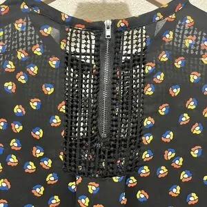 Meadow Rue Anthropologie Women XS Black Printed Crochet Tunic 70s Boho Hippie