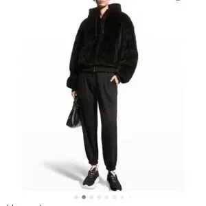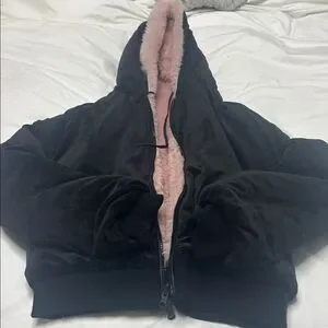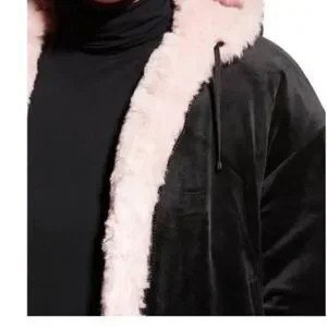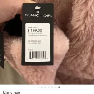 Blanc Noir Luxe Faux Shearling Peach Whip ReversibleHoodie. Size Med. Soft and warm!!! Has a hood.Be cozy and chic with a Peach Whip Reversible Faux Fur Hoodie! This reversible jacket features a functional drawcord hood and front zip pockets for ultimate comfort. Crafted from the softest faux fur.
