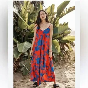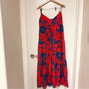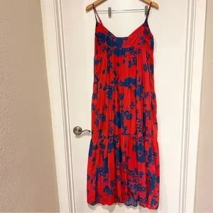 Velvet By Graham & Spencer Colette Printed Maxi Dress In Blue Red Floral size M