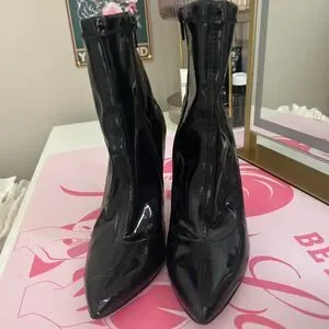 7.5 Black patent leather ankle boots with pointed toe and high heel #glamour #heels #party
