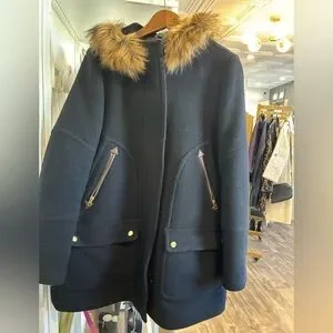 J.Crew Chateau Parka in Italian stadium-cloth wool with a faux-fur hood size 8