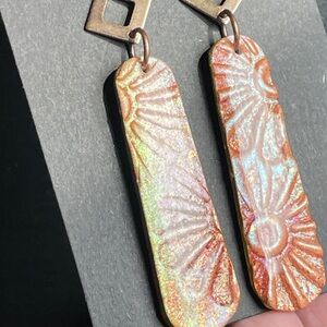 These Beautiful floral embossed handmade earrings feature lots of sparkling colors in shimmering pinks and orange. Unique and stylish design.