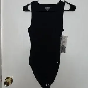 GOOD AMERICAN's 'Feel Good' bodysuit is sure to do just that. Made from soft and flexible cotton-blend with a finely ribbed texture, it has a slim fit and scooped neckline. Style yours with the brand's relaxed denim.