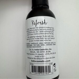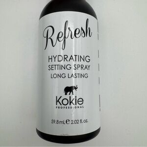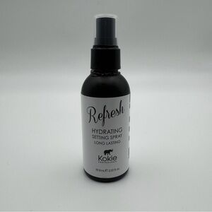 New, sealed Kokie Professional Refresh Hydrating Setting Spray, 2.02oz bottle. Lock your makeup into place with this luminous, fine mist setting spray. This Refresh Hydrating Setting Spray allows moisture to penetrate down into your skin providing lasting hydration for an all-day glow. Apply 2-3 sprays evenly across the face and allow it to dry for a dewy finish that prolongs your look. Ideal for normal to dry skin. Extends makeup wear time, has a hydrating finish, and refreshes skin.