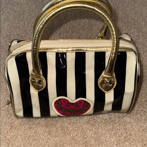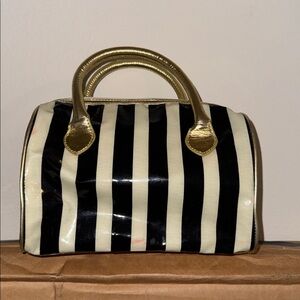 Betsey Johnson Black and White Striped Satchel, Vintage, Rare BETSEY JOHNSON
