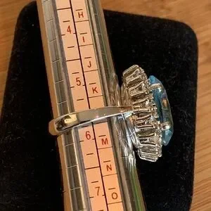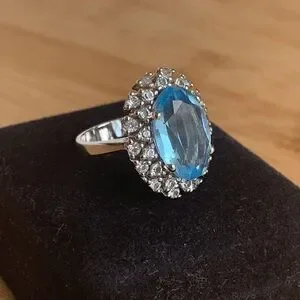 Statement Simulated Crystal Diamond & Blue Stone Marked “925 Spain” Ring