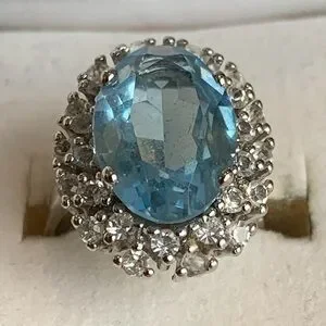 Statement Simulated Diamond Crystals & stimulated Blue Topaz aquamarine Stone