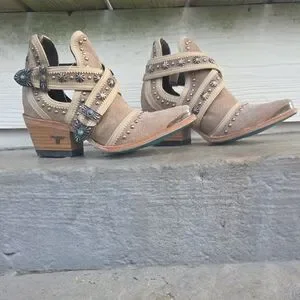 Lane Boots Tan Studded Leather Ankle Booties - Turquoise Soles
