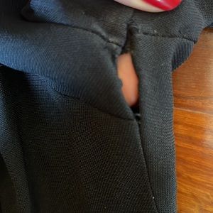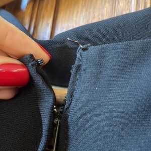 Beautiful vintage dress! It has come unsewn under the arms and has a blemish on a sleeve. They hook has been stretched and needs to be replaced. It is so elegant and beautiful with a little TLC it will be a fantastic dress.