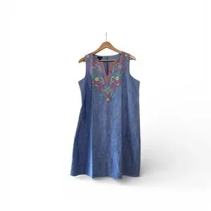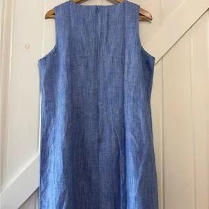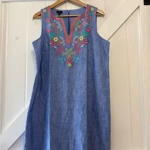 Talbots Linen Blend Embroidered Floral Blue Chambray Sleeveless Shift Dress 16P