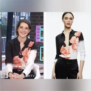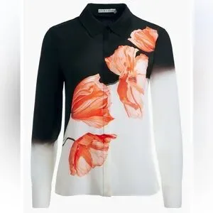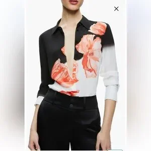 Alice + Olivia Brady Floral Slim Fit Silk Button-Up Shirt size M