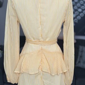 Leith Yellow & White Striped Long Sleeve Wrap Mini Dress – Size Small Romantic