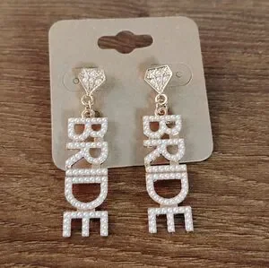 Celebrate the bride-to-be in style with these fun and glamorous "BRIDE" statement drop earrings.