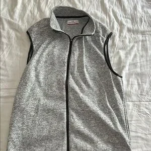 Heather gray vest featuring sleek black accents. Ideal for versatile styling.