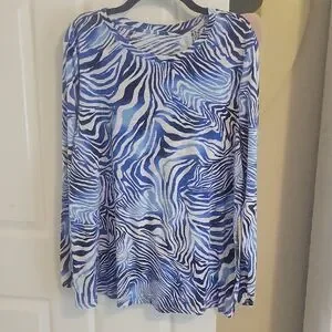 blue sol Sz1X Vibrant Blue Zebra Print Long Sleeve Scoop neck relaxed fit Top