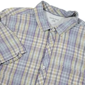 Horny Toad Button Up Shirt Mens Large Weldon Plaid Short Sleeve Organic Cotton