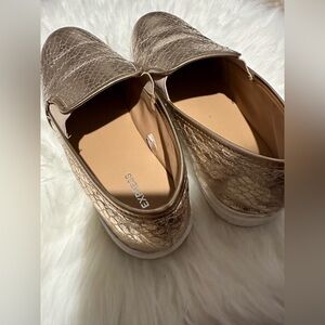 Gold snakeskin slip on sneakers