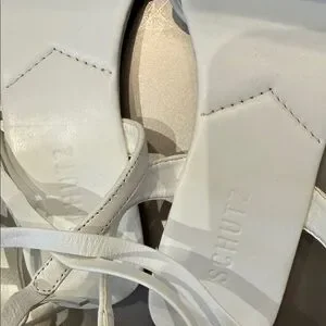 NWT SCHUTZ White and Black Two-Tone lace up Flat Sandals