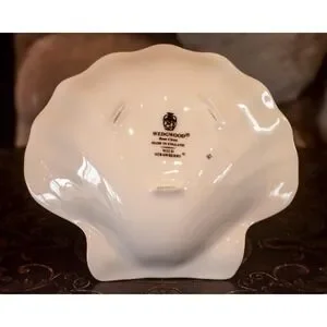 This vintage Wedgwood Wild Strawberry shell dish, crafted from fine bone china in England, features a graceful shell shape that feels both elegant and playful. It is the sort of small treasure that adds instant refinement to a dresser, vanity, or tea table.