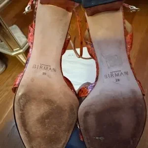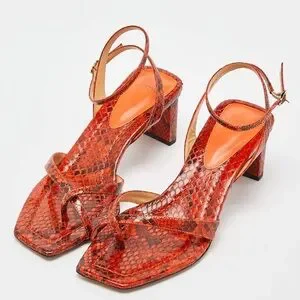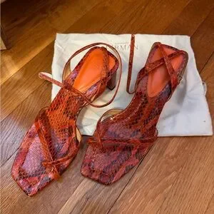 Orange snakeskin heeled sandals