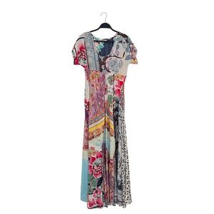 Keywords: Johnny Was, maxi dress, silk dress, floral dress, patchwork dress, bohemian dress, resort dress, casual dress, XS dress, boho chic, bohemian style, summer dress, spring dress, designer dress, flowy dress