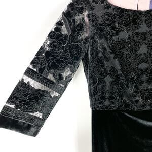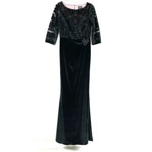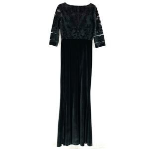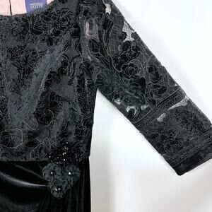 Marchesa Black Velvet Gown Cutwork Floral Embroidered Side Slit Sz 6