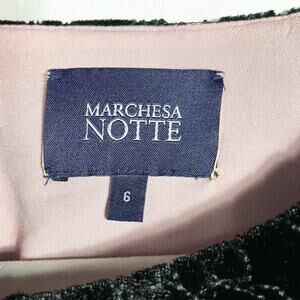 New Marchesa Notte Velvet Cutwork Gown Black Floral Embroidered Side Slit Sz 6