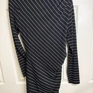 Banana Republic Asymmetrical Striped Midi Dress Long Sleeve Black White M