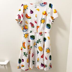 Brighten your wardrobe with this vibrant print dress. Short sleeve, v-neckline, Mediterranean print.