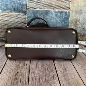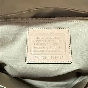 Interior: Lined with a contrasting beige fabric and includes a zippered pocket as well as a split drop-in pocket.