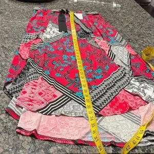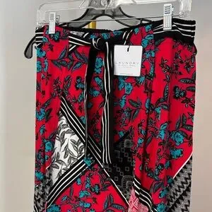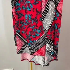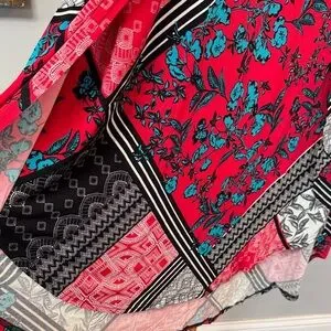 Laundry By Shelli Segal Boho Red and Black Patterned High Low Skirt NWT L