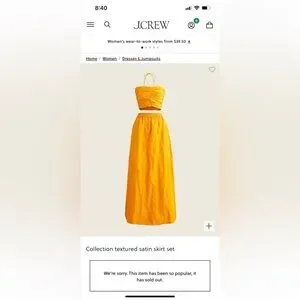 J.Crew collection NWT textured satin skirt set lined with pockets 2 piece set