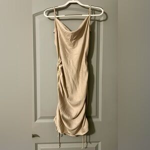 Step out in style with this elegant beige dress. Perfect for any occasion, it offers both comfort and sophistication.