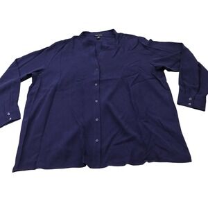 Eileen Fisher 100% Silk Button Down Shirt Womens XL Purple Long Sleeve Blouse