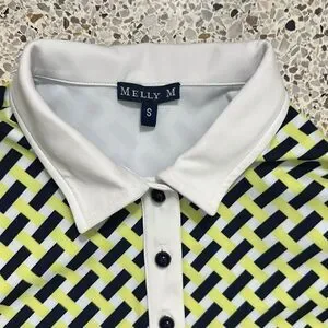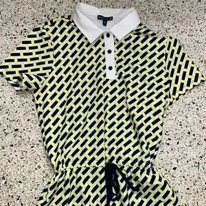 EUC Melly M navy yellow print polo dress mini drawstring waist small s golf resort