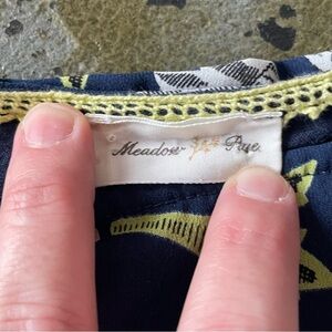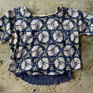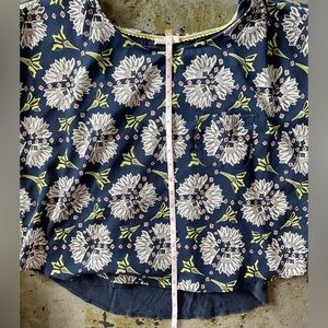 Beautiful gently used, Anthropology Meadow Rue top. No tears or stains. Gorgeous detail on sleeve. One small front pocket. Top is sheer with navy lining. Smoke free home. Size tag is missing, but estimate approximate size as medium.