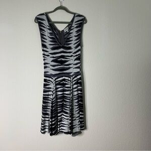 Milly Womens Ikat Jacquard sleeveless Flare Dress in black white multi L