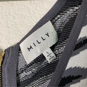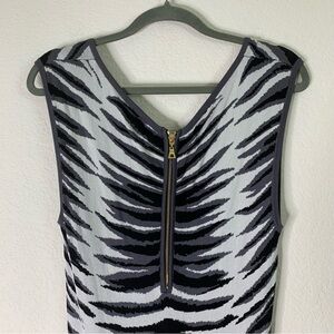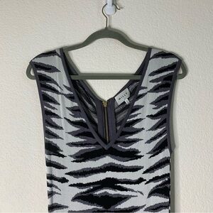 Milly Womens Ikat Jacquard Sleeveless V neck Knit Back zip Dress in white black multi