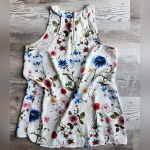 Pink Rose vintage floral tank top, size small. White with a soft floral pattern and a light, flowy feel. Very feminine and easy to wear for summer or layering.